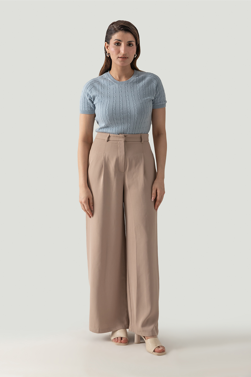 The Cable Knit Short Sleeve Raglan in greyish blue offers a relaxed fit with its stylish crew neck and short sleeves. Crafted from soft blended cotton, this piece combines comfort and style effortlessly, making it suitable for everyday wear.
