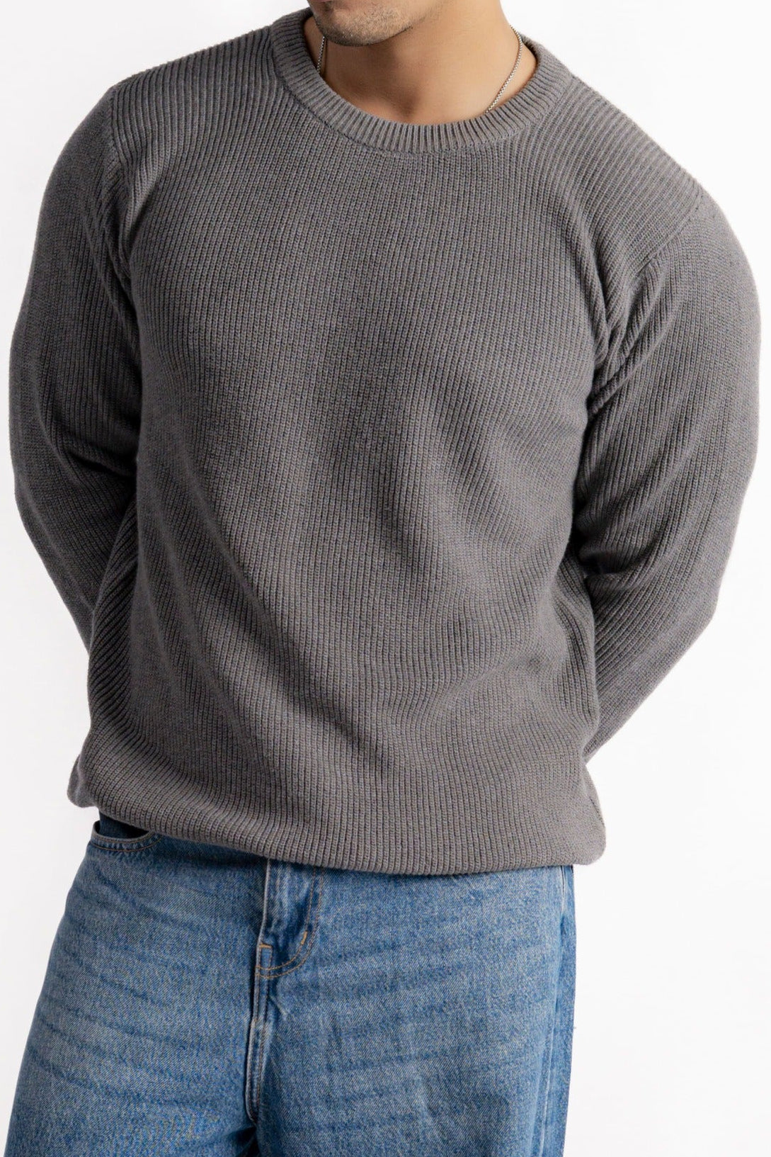 The Grey Shaker Knit Jumper features a regular fit with a distinctive shaker stitch that creates a bumpy, textured surface across the body and long sleeves. Its crew neckline offers a clean, classic shape in a versatile grey tone, providing a balanced option for layering over tees or pairing with chinos for everyday outfits.