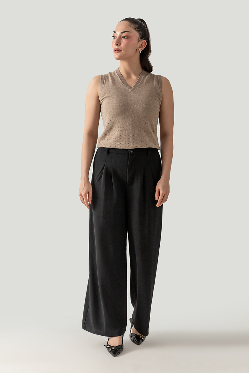 The V-Neck Pointelle Vest in oat meal is designed with a flattering v-neckline and intricate pointelle detailing. Made from soft cotton, this vest provides lightweight warmth, making it an excellent layering piece for cooler days while adding texture to any outfit.